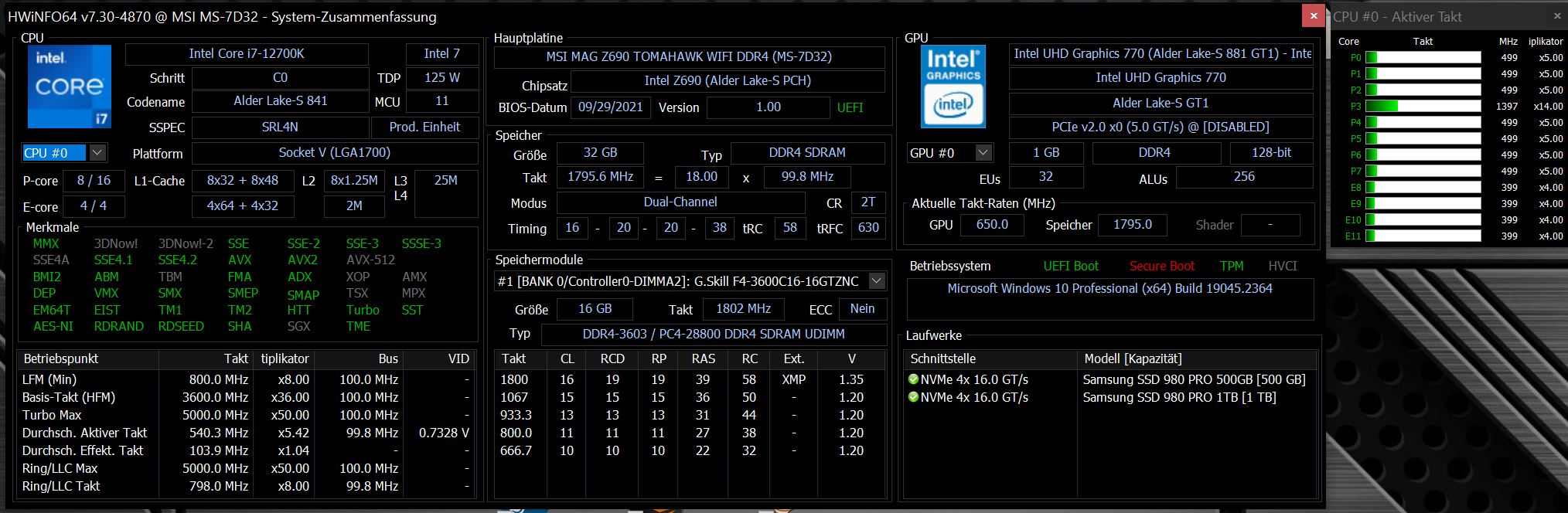 - Prozessor (CPU): i7-127000K 12(8+4) 3.60Ghz