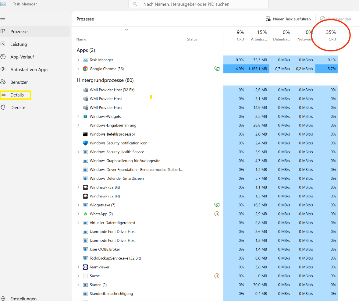 Alle Treiber,GPU und CPU, neuste BIOS Version, alle W11 Updates.