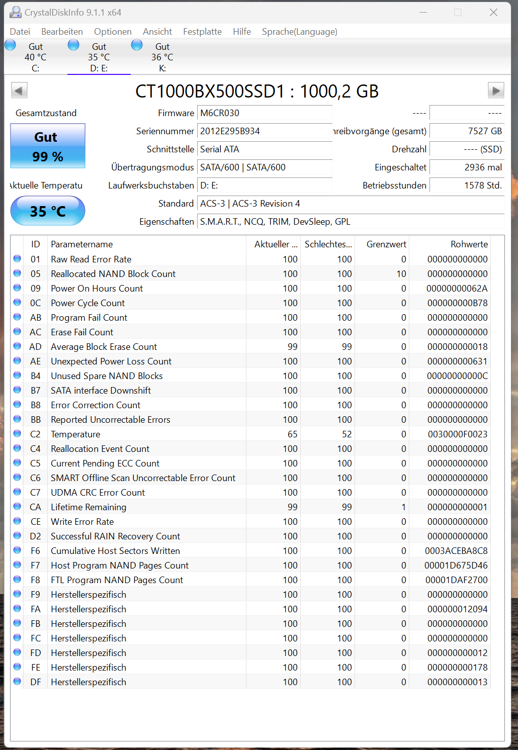 - HDD / SSD: 960 Pro + Crucial CT1000BX500SSD1
