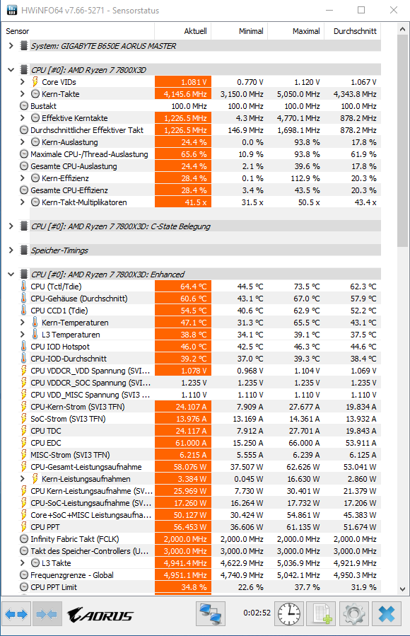 - Mainboard: Gigabyte B650E Aorus Master