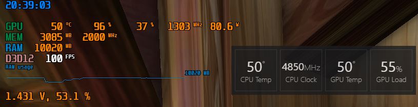 Ich habe mal Afterburner installiert, und den RivaTuner, um ingame (World of Warcraft) mal ein paar Werte sehen zu können und nebenbei habe ich ein paar Werte in der AMD-Adrenalin-Software verändert. Im Prinzip habe ich keine Schwierigkeiten, FPS sind immer auf 60, die gehen nur runter, wenn ich ingame auf din Win-Taste drücke.