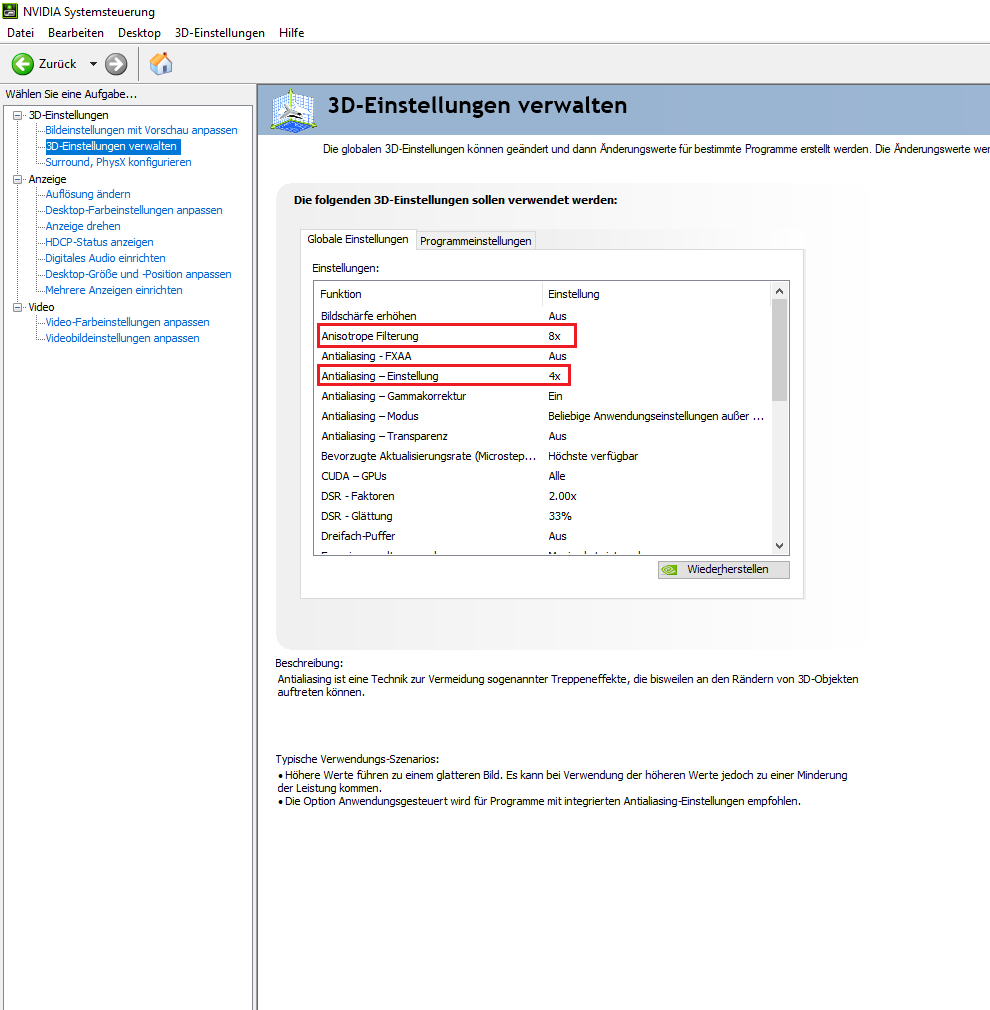 1. nicht an Einstellungen gefummelt hat