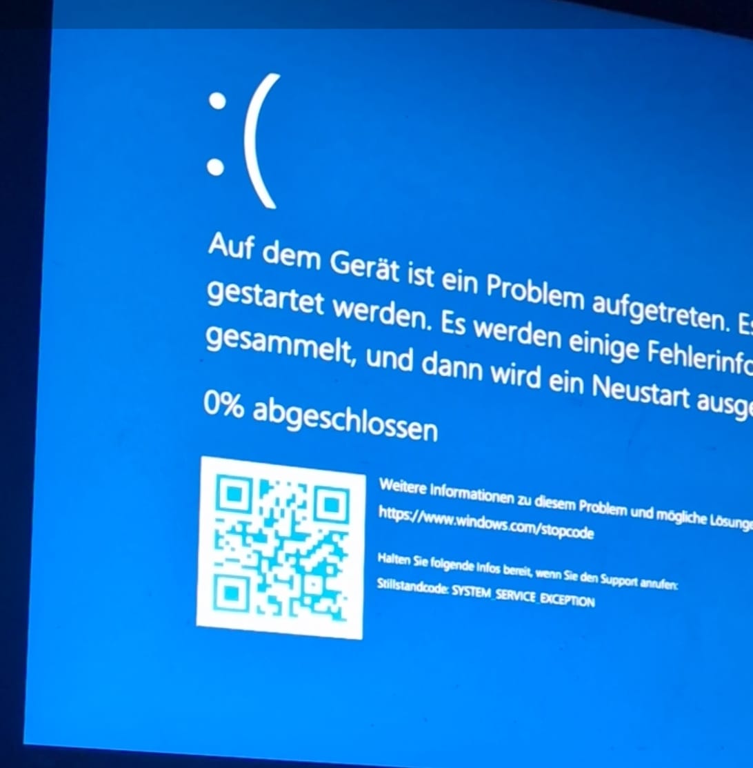 Ich habe mir vor ein paar Tagen neue Komponenten in meinen PC verbaut und seit dem spinnt das System. Als ich mit meinem Kumpel Sons of the Forest spielen wollte ist das Spiel einfach random gecrasht. Dachte mir nicht viel dabei und startete das Spiel wieder und spielte weiter. Nach etwa 5 minuten bekam ich einen BSoD mit dem fehlercode: SYSTEM_SERVICE_EXCEPTION. Der Pc startete neu, ich spielte weiter und nach ca. 5 crashte das Game und nach weiteren 5min wieder der BSoD. Man könnte jetzt meinen es liegt daran, dass das Spiel noch im early access ist und meine Grafikkarte nicht den Mindestanforderungen entspricht(mit den alten Komponenten crashte das Spiel nicht). Wollte dann einfach nur noch Youtube schauen und nach ca 1 1/2 stunden hatte ich keinen Sound mehr und dann kam da dieser Ladekreis bei Video, aber das Video lief einfach weiter. Den Vollbildmodus konnte ich nicht minimieren. Fast nix ging mehr. Ich konnte weder etwas öffnen noch schließen, außer den Taskmanager mit strg+shift+esc. Der Taskmanager hat sich zwar geöffnet aber nix hat geladen.