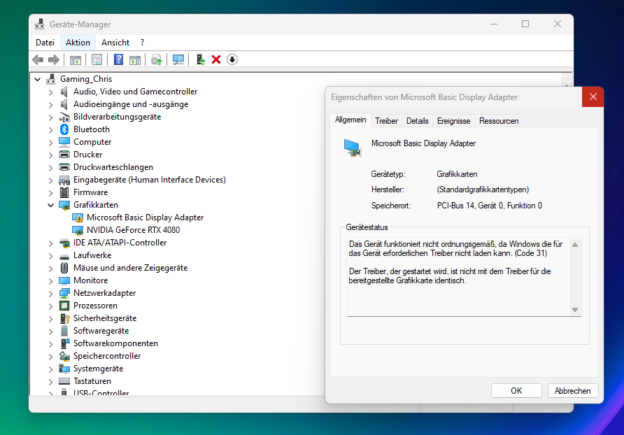 Da ich meine Nvidia Grafikkarte nutze, dachte ich, ich schalte die AMD Grafik einfach im Bios aus und deinstalliere den Treiber. Ich brauch die AMD Grafik nicht.