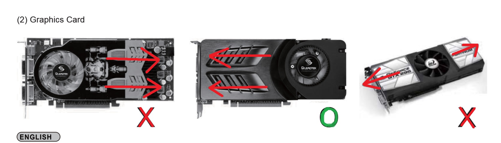 Im Handbuch meines kürzlich erworbenen Gehäuses steht das GPU's empfohlen werden, die Ihre warme Abluft in Richtung IO Panel pusten. Es ist ein Gehäuse wo das Board gedreht hineinkommt.