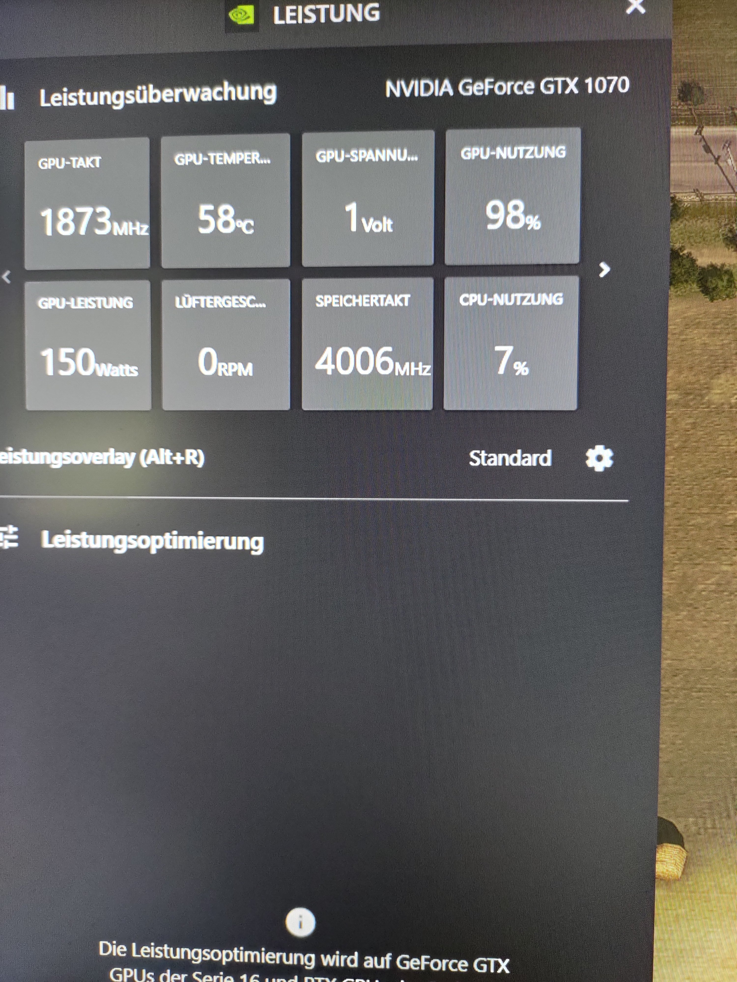 habe die Auflösungskalierung komplett auf max gestellt und alles andere auch. ich glaube er berechnet sozusagen dadurch eine bessere auflösung aber mein bildschirm stellt har nur 1080p dar. und jetzt ist die auslastung und leistung der gpu sowie temperatur angestiegen.