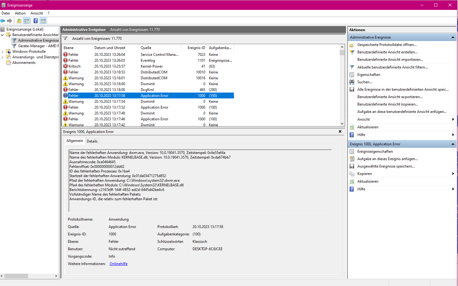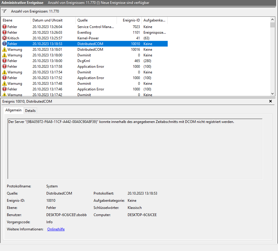 Was sagt die Windows Ereignisanzeige?