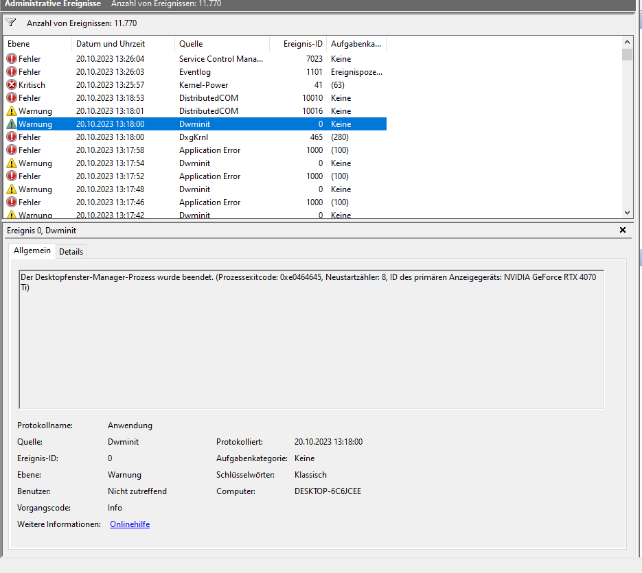 wobei... ich hätte erst mal schauen sollen, was dort drin steht... der zweite und vierte Eintrag haben ja einen direkten Bezug auf die GPU und sucht man nach dwminit oder einfach nur dwm, gibt es auch direkt einige Treffer mit Nvidia Bezug. Geh mal den Punkten nach, ob da was bei ist, was deiner Problematik entspricht und schau mal, ob / was da als Lösung gegeben wird