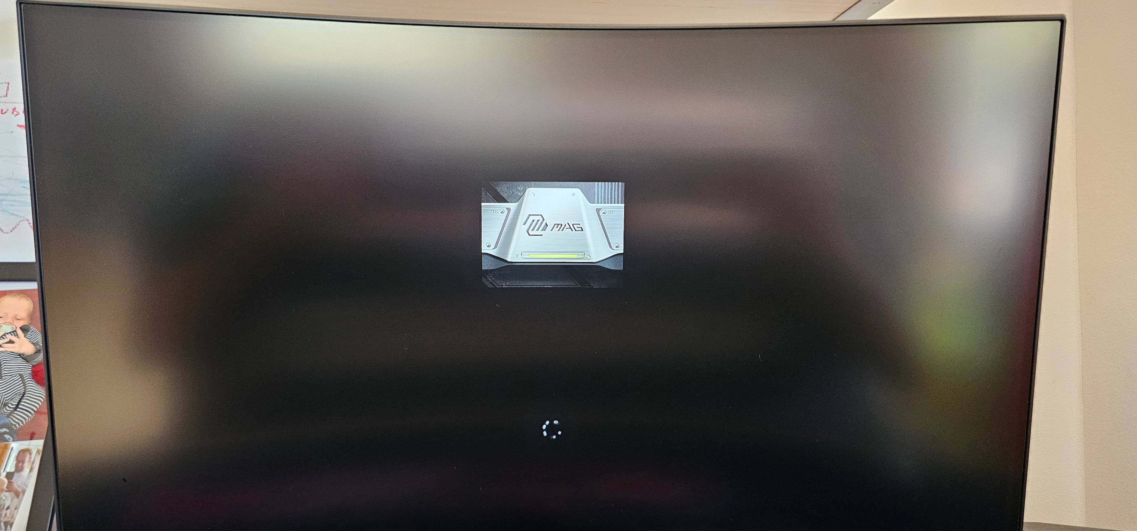 Was allerdings auffällt ist das bereits hier (wenn der PC dann im anschluss stottert) der Ladekreis unter dem "MAG" Logo stottert was für mich ein zeichen dafür ist das das Problem sich bereits beim booten aufbaut und die unterschiedliche Größe des "MAG" Logos auf eine Signalstörung des Bildschirms oder GraKa hindeutet...soweit so gut.