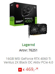 ne rtx4060ti 16gb für 400€ dürfte sich schnell abverkaufen. Das ist eine sku wo ich klar sage meh und ok