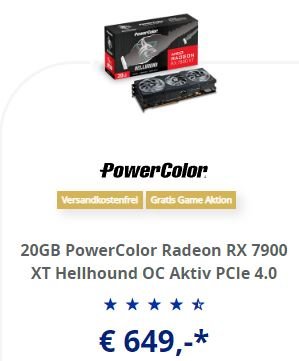 Und im Schnäppshop ne 7900xtx@799€. = nur Was für PL90% und UVten, (schwacher Kühler)