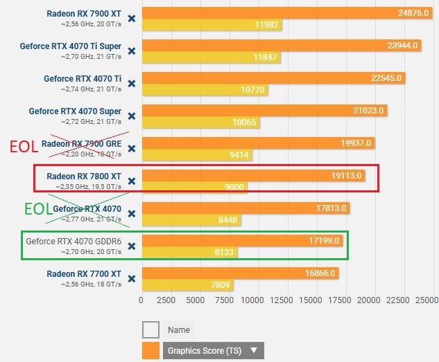 Und klar eine 7800xt 7700xt und Teilweise auch 7900xt ist schon mal in nem Preisrahmen wo 10-30% Preissenkungen dann in Regionen die bringt wo Leute die bisher nicht gekauft haben weils zu teuer war es interessant wird.