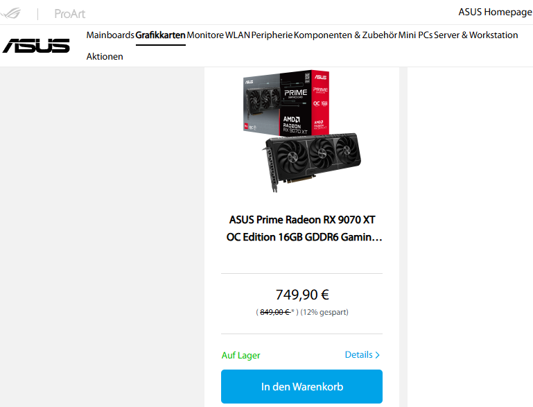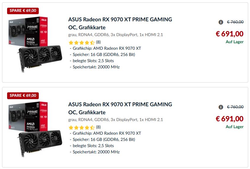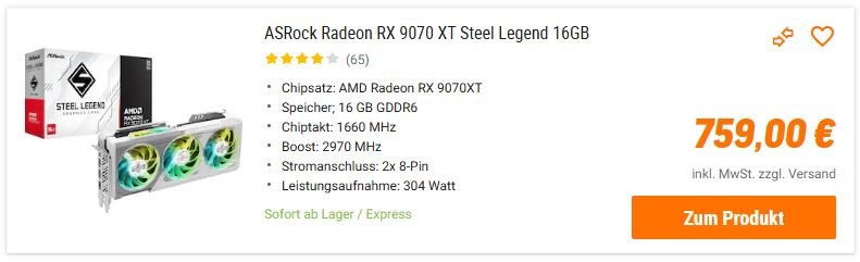 Die PRIME 9070xt gibts gleich bei A für 757€.