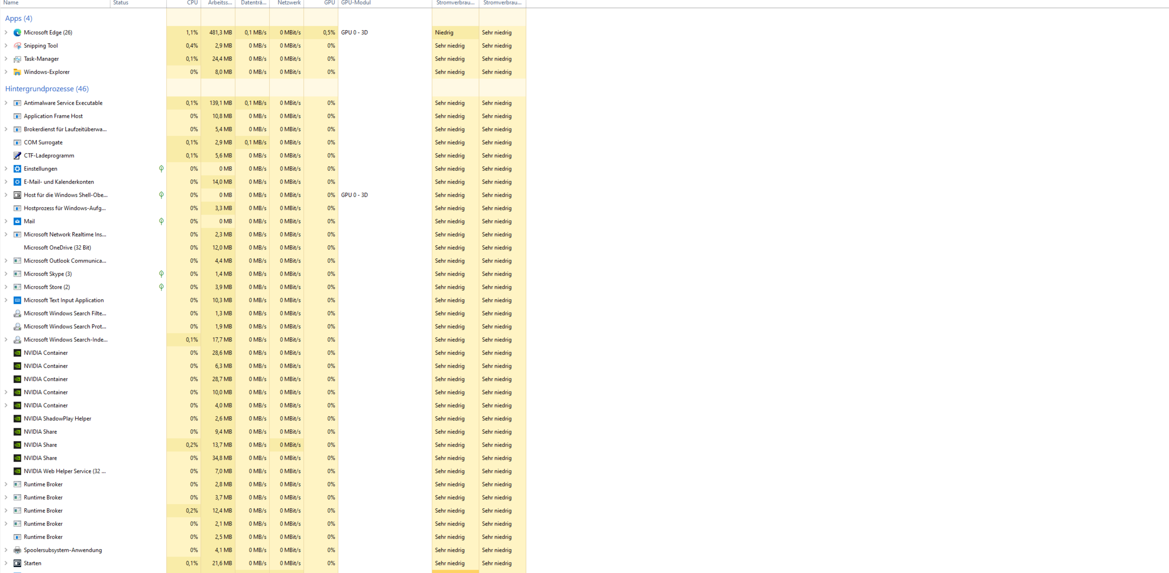 Genau das. Nun nochmal mit der oberen Spalte GPU Auslastung und nach GPU Auslastung absteigend sortiert.