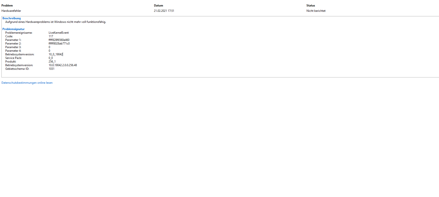 und es tauch auch immer wieder dieser eine Fehler im Zuverlässigkeits verlauf auf