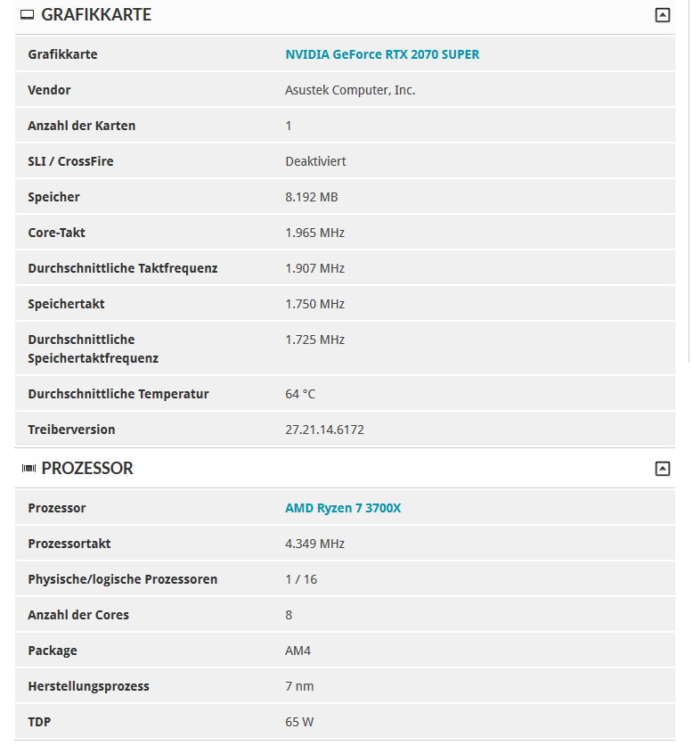 - Grafikkarte: ASUS Dual GeForce RTX 2070 SUPER Evo