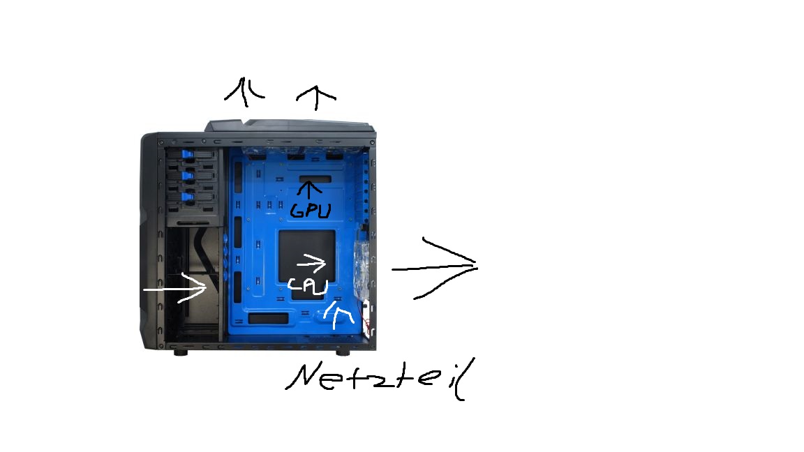 Anbei noch ein mehr oder weniger gelungenes Bild meines Airflows im Gehäuse.