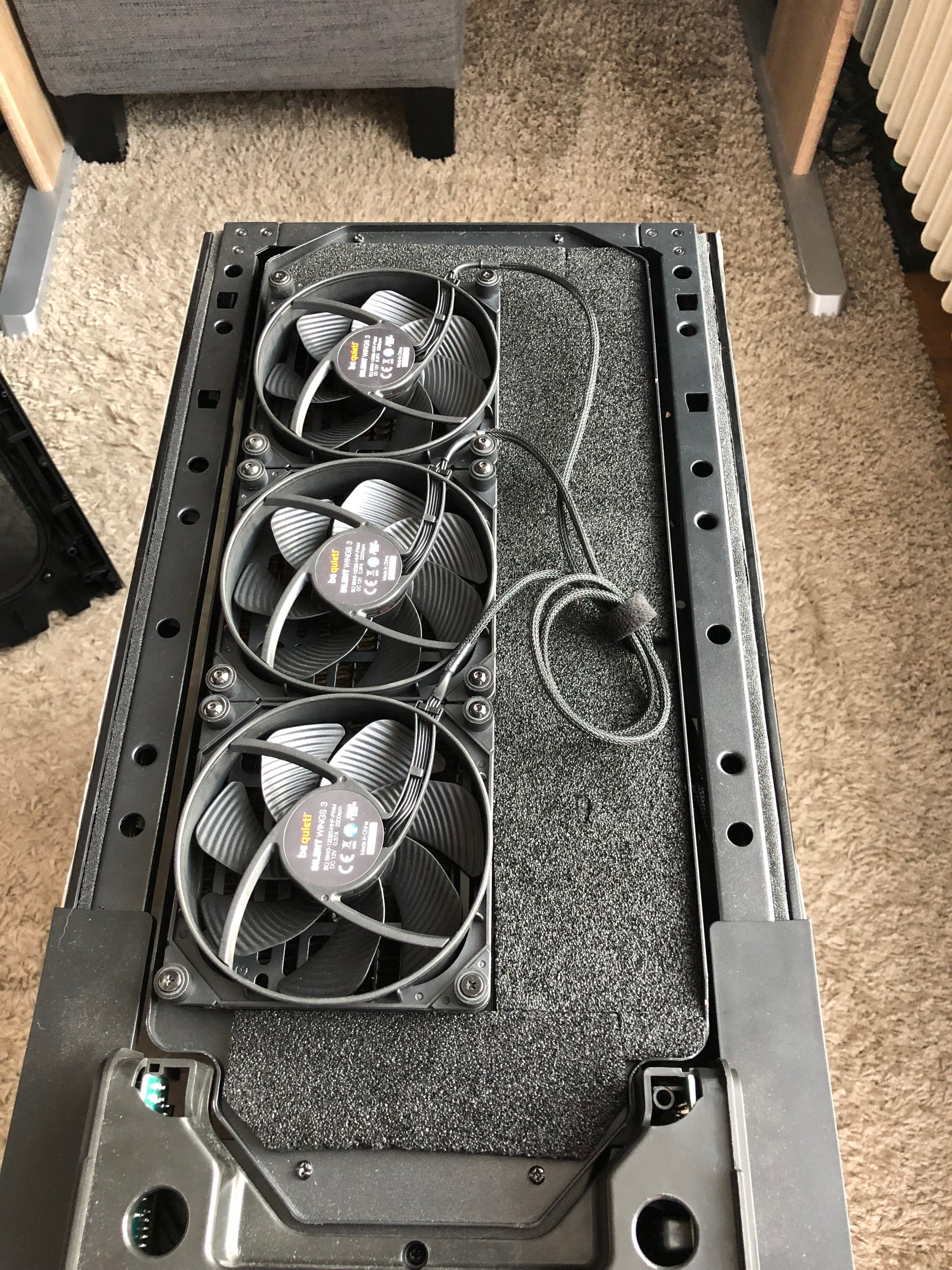 Dann bekommen die Lüfter viel besser Luft als nur von der Seite. Beim Dark Base Pro ist ja wirklich nur ein kleiner Spalt über/vor den Lüftern, daher befürchte ich das die Temps nicht so bombe sein werden.