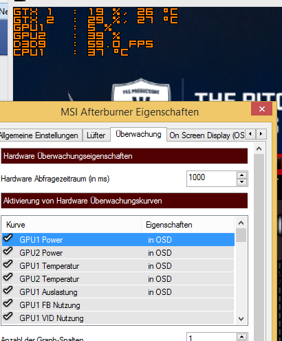Ebenso geht die Anzeige von Informationen per OSD obwohl ich HWinfo geschlossen habe.