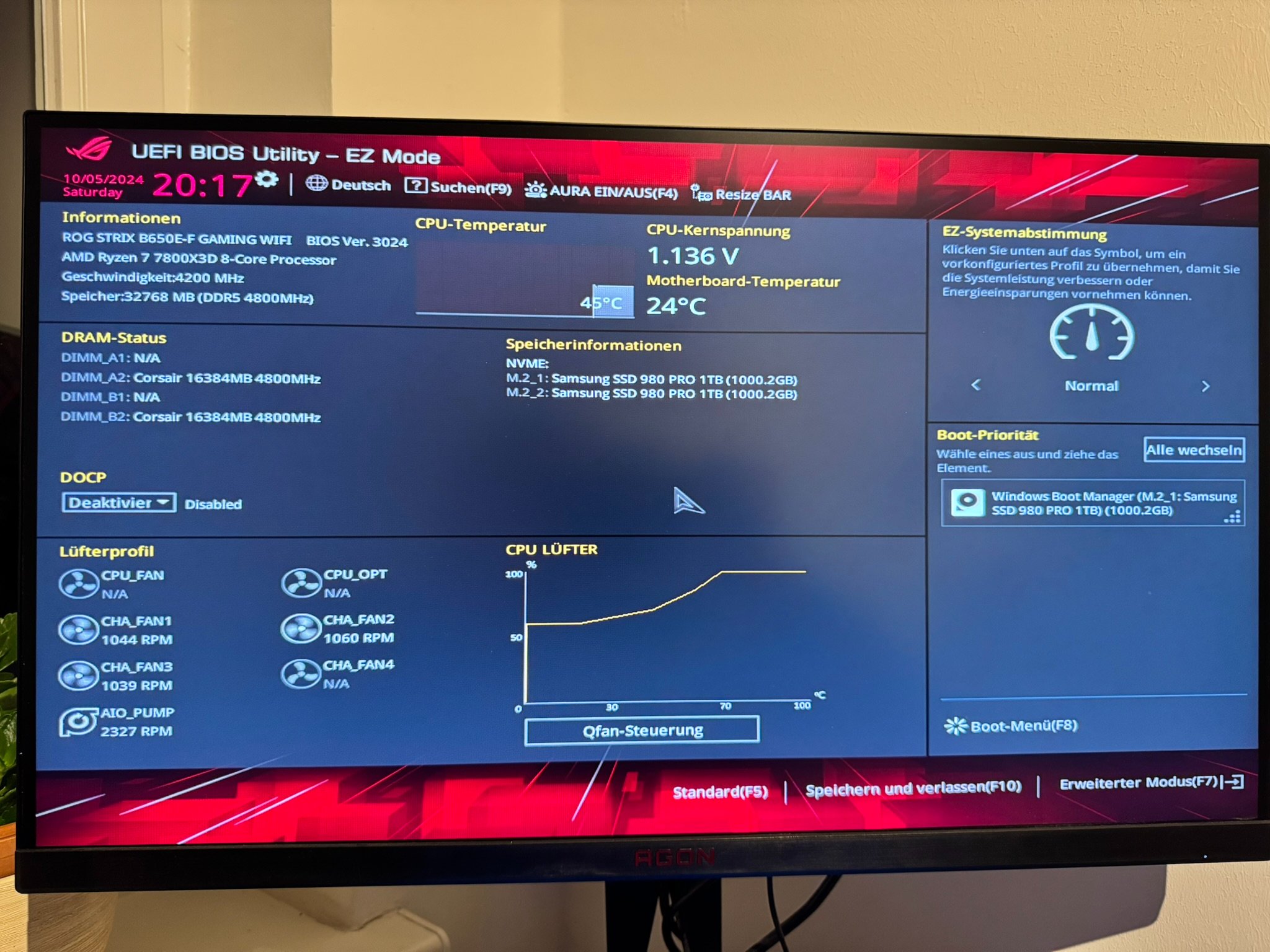 - Weitere Hardware, die offensichtlich mit dem Problem zu tun hat (Monitormodell, Kühlung usw.): Ich habe eine AiO-Wasserkühlung für die CPU und diverse Fans installieren lassen (ein Hinweis: der PC wurde für mich von einem Freund zusammengebaut, da ich selbst leider wenig Ahnung habe).