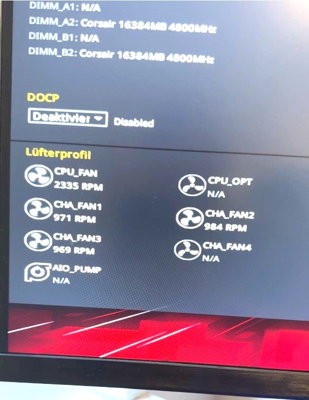 Begonnen hat dies zeitlich ca. zusammenhängend mit der Fehlermeldung "CPU Fan speed detection error!" (siehe Foto anbei).