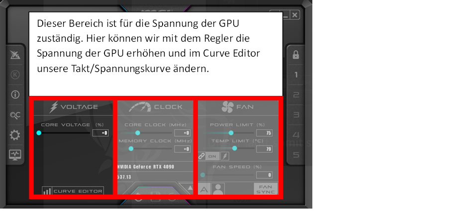 Kann man diese ausschließen, bieten sich besonders das Einstellen eines Power Target und das anpassen der Takt/Spannungskurve an.