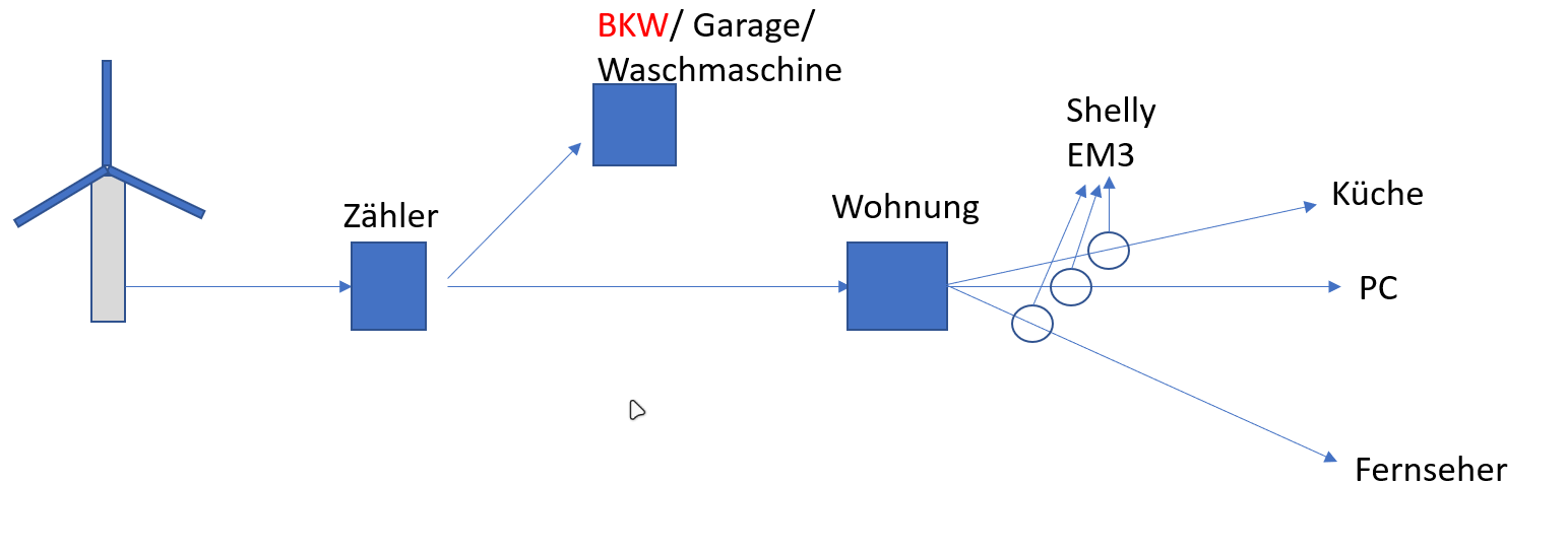 Somit trackt der Shelly EM3 nur den verbrauch in meiner Wohnung. Steckdosen die direkt vom Hausanschlussraum abgehen trackt dieser somit nicht mit. An einer dieser Steckdosen hängt auch mein Balkonkraftwerk. (siehe Bild)
