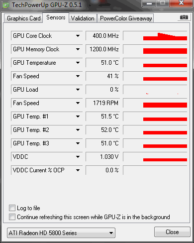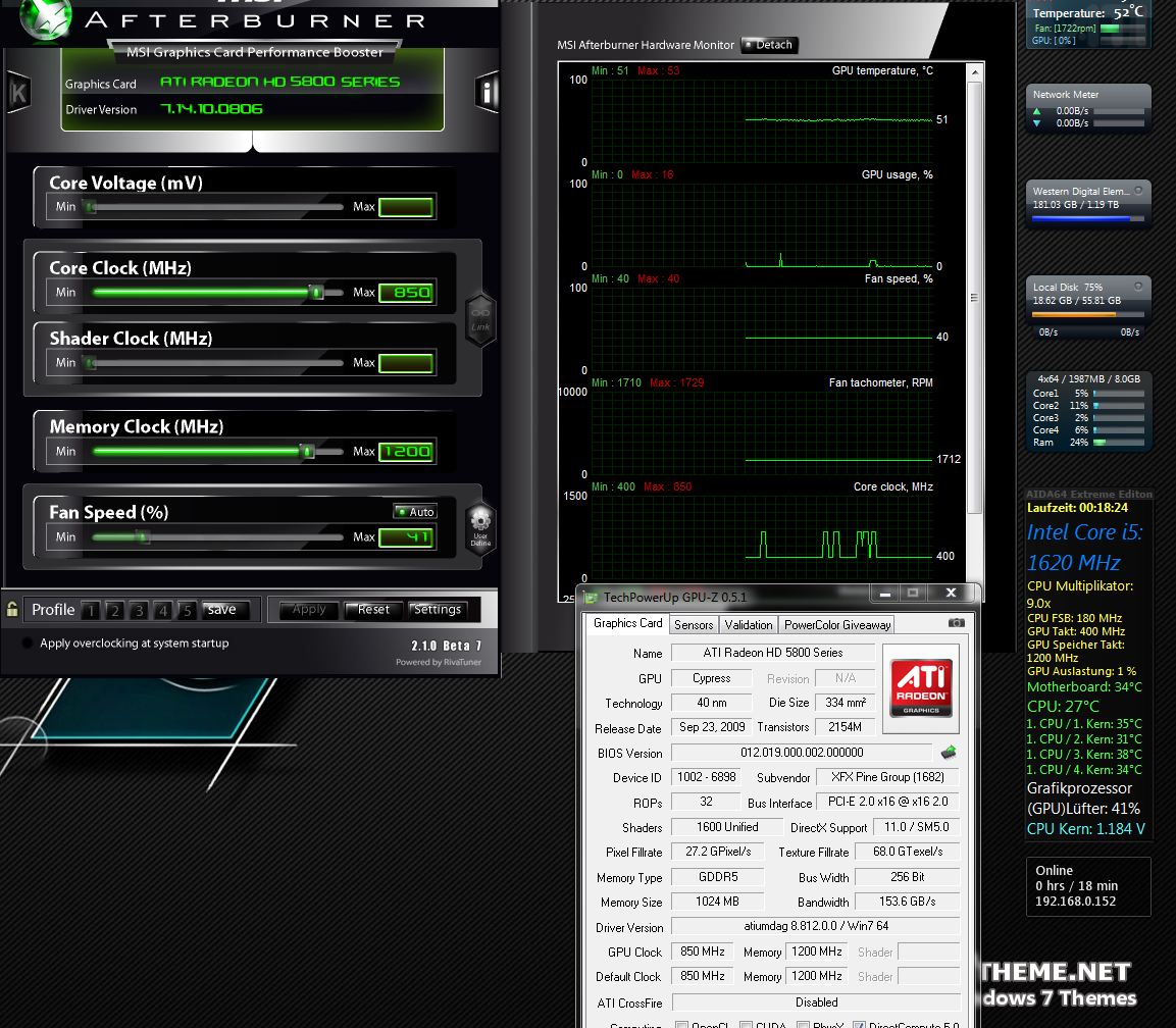 Bis jetzt schläg sie sich gut, weiterhin 0 Prozent auslastung im idle ,nur die Karte ist immer noch 52 GRad warm und das im idle wo keine Belastung stattfindet