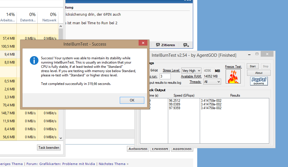 Stelle Stress Level auf Maximum , Times to Run auf 3 , Threads auf All , und warte bis alle 3 Tests Abgeschlossen sind , wenn du überhaupt so weit kommst ^^