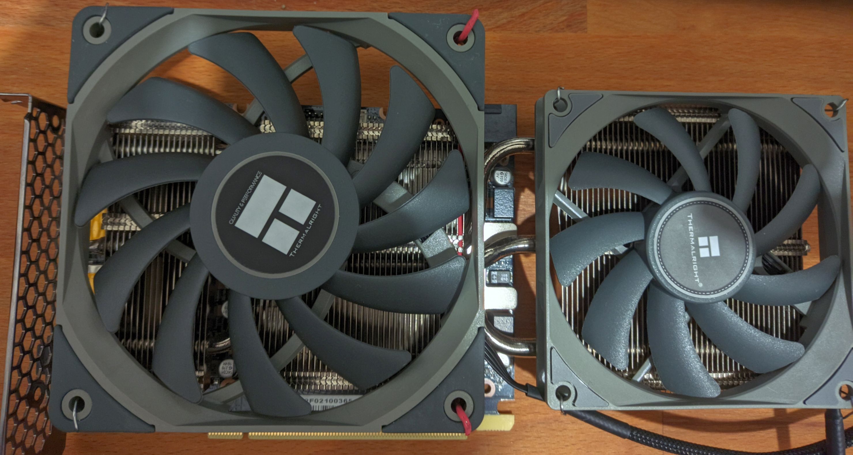 Was die Lüfterwahl angeht, so habe ich für mich die Thermalright TL-C12015 (1500RPM) und TL-C9015 (2700RPM) mit 15mm Dicke in den genannten Internetlinks gewählt. Wenn man 25mm Lüfterdicke nehmen möchte, weil man unter der Grafikkarte Platz hat, kann man sich austoben und die Lüfterkurven sicher weiter absenken. Beim 92mm Lüfter würde ich tatsächlich sogar ein gutes 25mm Modell empfehlen um die Lüfterdrehzahl nicht über 1800RPM selbst im Hochsommer zu überschreiten. Das sagt leider wenig aus, wie die Temperatueren aussehen und sich die Geräusche auf der GPU anhören werden. Noctua und Arctic werden sicher eine Wahl sein, was für eine Lüfter Ghettomod gerne genommen wird. Aber da wird wohl so ziemlich alles an 120/90mm Aftermarket Lüftern gegenüber den Gainward Lüftern besser sein.