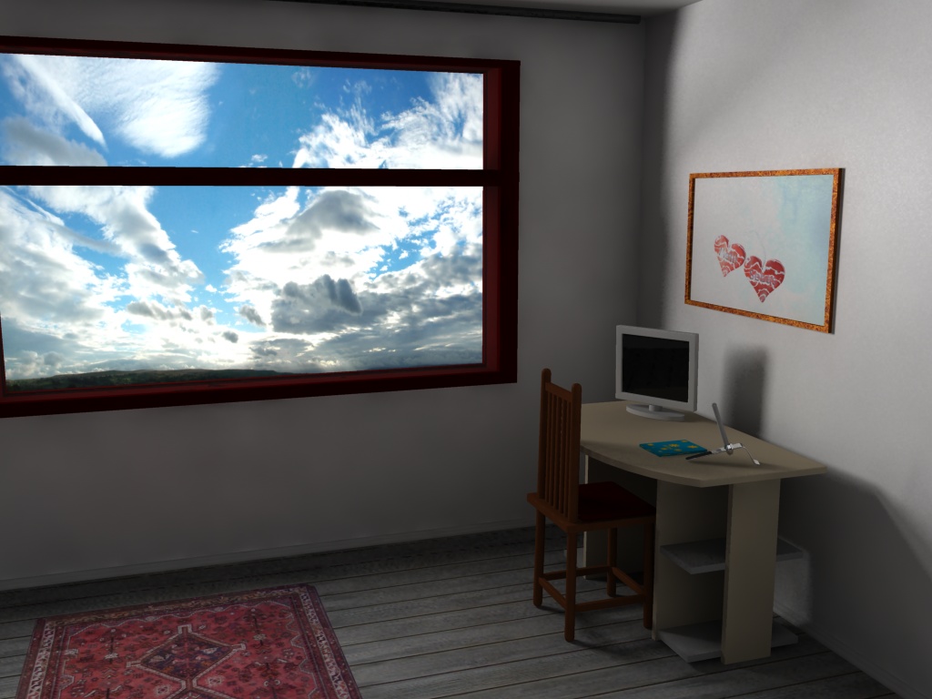 Bin noch nicht damit fertig und werde vielleicht nen anderen Raum machen. Was mir nicht richtig gelingt ist realistisches Licht und guter Schattenwurf der echt aussieht =/