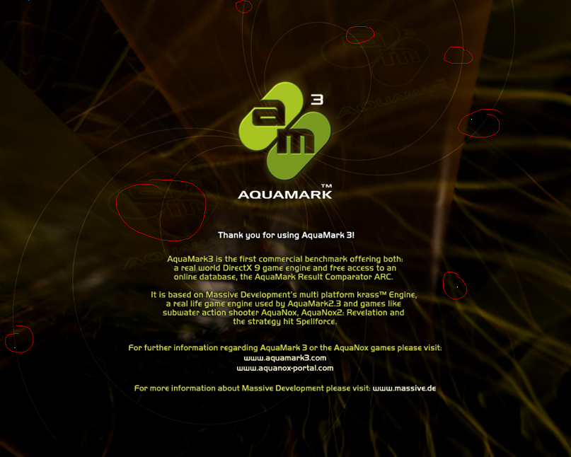 Darüber hinaus kommen beim Scrollen im Desktop/Idle immer mal kleine grüne Punkte (jeweils 1 Pixel groß), die sich wie eine Kette aneinanderreihen ... sieht witzig aus, denn wenn man geöffnete Fenster (zb Thunderbird) mit gedrückter Maustaste hin- und herzieht, dann verfolgt diese Kette die Richtung der Verschiebung ... sobald man in dieses Fenster klickt, verschwinden diese ... im 16bit Modus sin diese Punkte rot/grau ... Diese Punkte entstehen immer an einem bzw. auch mehreren Punkten auf dem Bildschirm und ziehen dann diese "Kette" hinter sich her ...