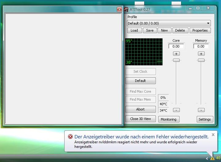 Habe das ATITool deinstalliert. Nachdem ich die nVidia-Systemsteuerung öffnete kam natürlich gleich Bluescreen (nvlddmkm war wieder die Ursache).