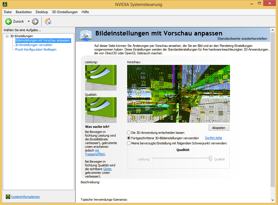 Ich spiele zurzeit Spiele wie League of Legends und Minecraft. Früher gingen die zwei Spiele ganz gut und zurzeit nicht. Ich habe mal die Nvidia Systemsteuerung geöffnet und hab bemerkt das bei meinen 3D Einstellungen was komisches ist. Ich hab auch dem Treiber neu aktualisiert und es hat nicht geholfen. Ich bin kein Pc Experte und kenn mich bei sowas nicht aus aber vielleicht könnt ihr mir dabei helfen. Ich hab noch ein paar Screenshots angehängt wie das aussieht.