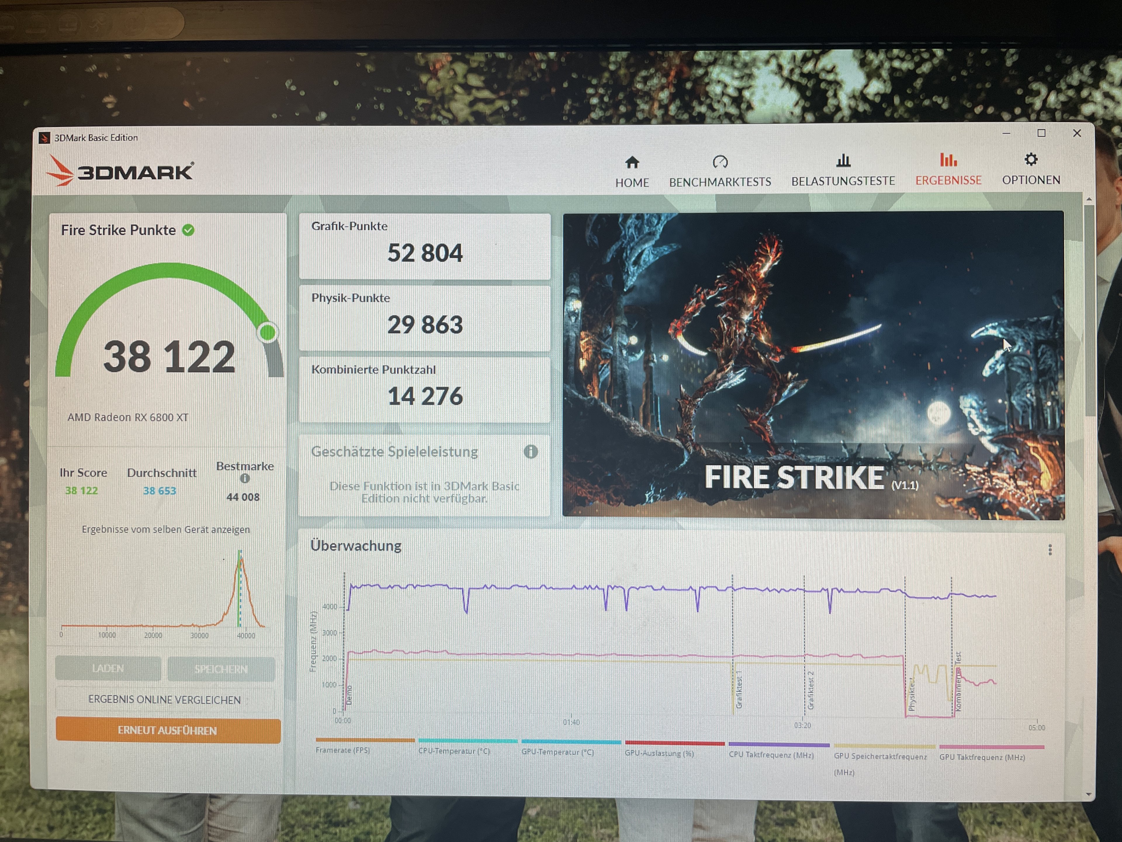 Benchmarktest des gesamten Systems (3D Mark FireStrike) bringt meiner Meinung nach sehr gute Werte, im Benchmark Test selber hatte ich auch keine Grafikprobleme (Ergebnisse siehe Bild). Komischerweise hat man quasi das gleiche Problem im Extrem (siehe Bild), wenn ich den 3D Mark TimeSpy drüber laufen lasse (kenne mich mit dem Test aber zu wenig aus, um dadurch auf Ursachen zu kommen). Ein Freund hat im TimeSpy das gleiche Problem, aber in keinerlei Spielen.