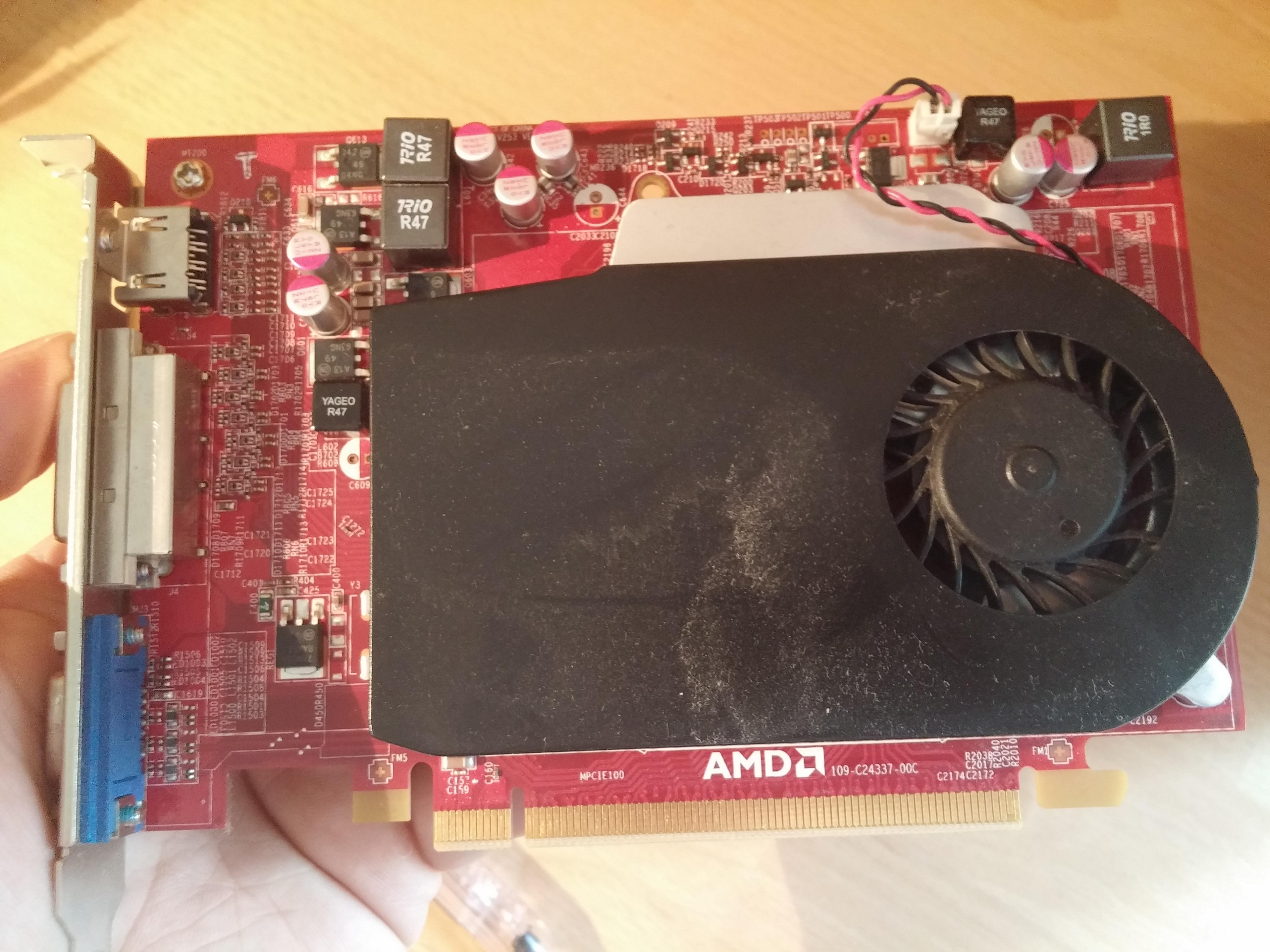 Das sollte eine Ati HD6670 mit 1GB Speicher sein. Kann man anhand der Artikelnummer auf der Rückseite ermitteln.