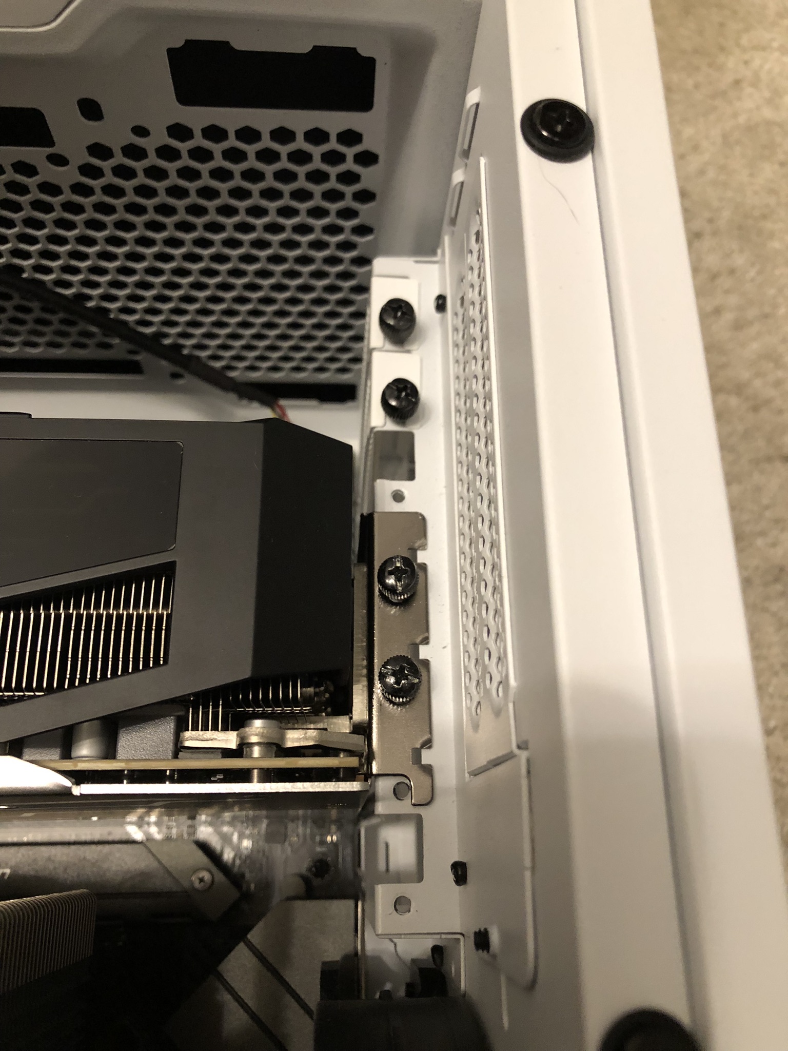 Kurz und knapp: Sollte ich nochmal etwas beim Einbau überprüfen oder sieht das soweit in Ordnung aus? Ggf. hattet ihr das auch schon, dass man beim Gehäuse etwas "nachhelfen" musste? Ich habe nur etwas Angst, dass eventuell jetzt durch die Verschraubung Zug oder Spannung auf der Grafikkarte sein könnte und diese dadurch beschädigt wird??? Aber wie gesagt, vielleicht bin ich an der Stelle auch nur übervorsichtig.