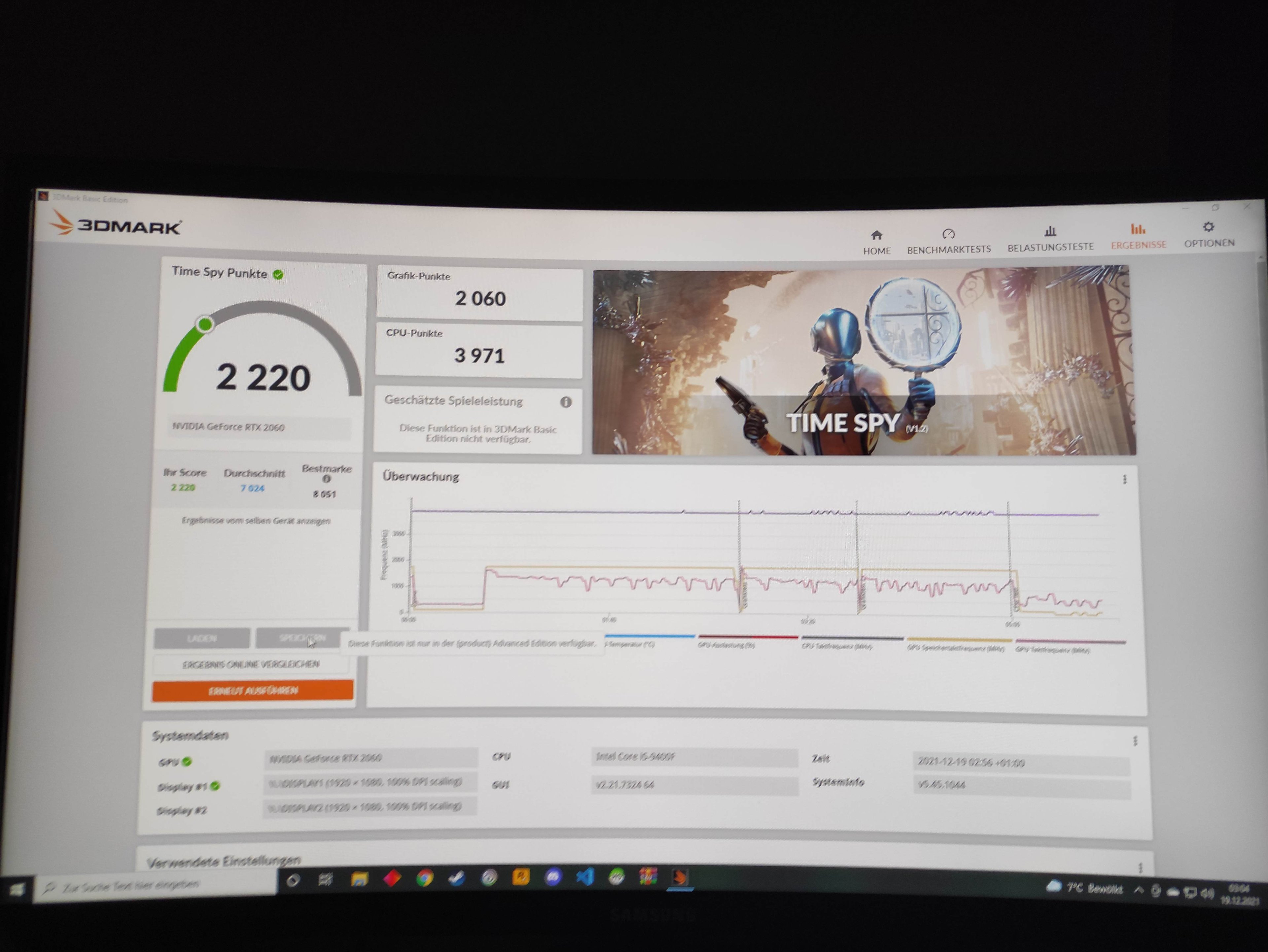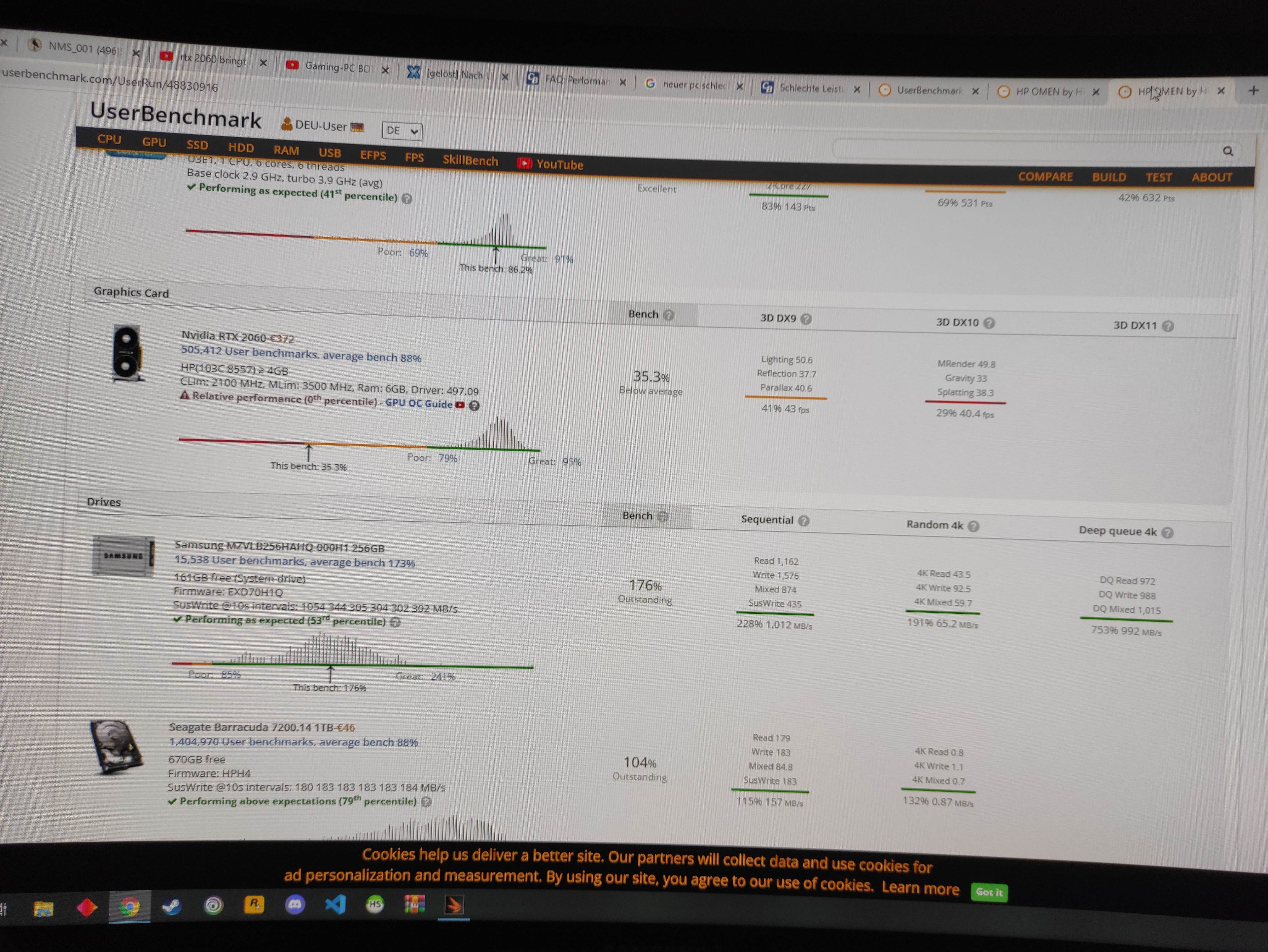 3. Benchmarks von 3DMark und UserbenchMark (beide sagen jeweils die Graka performt absolut unter)
