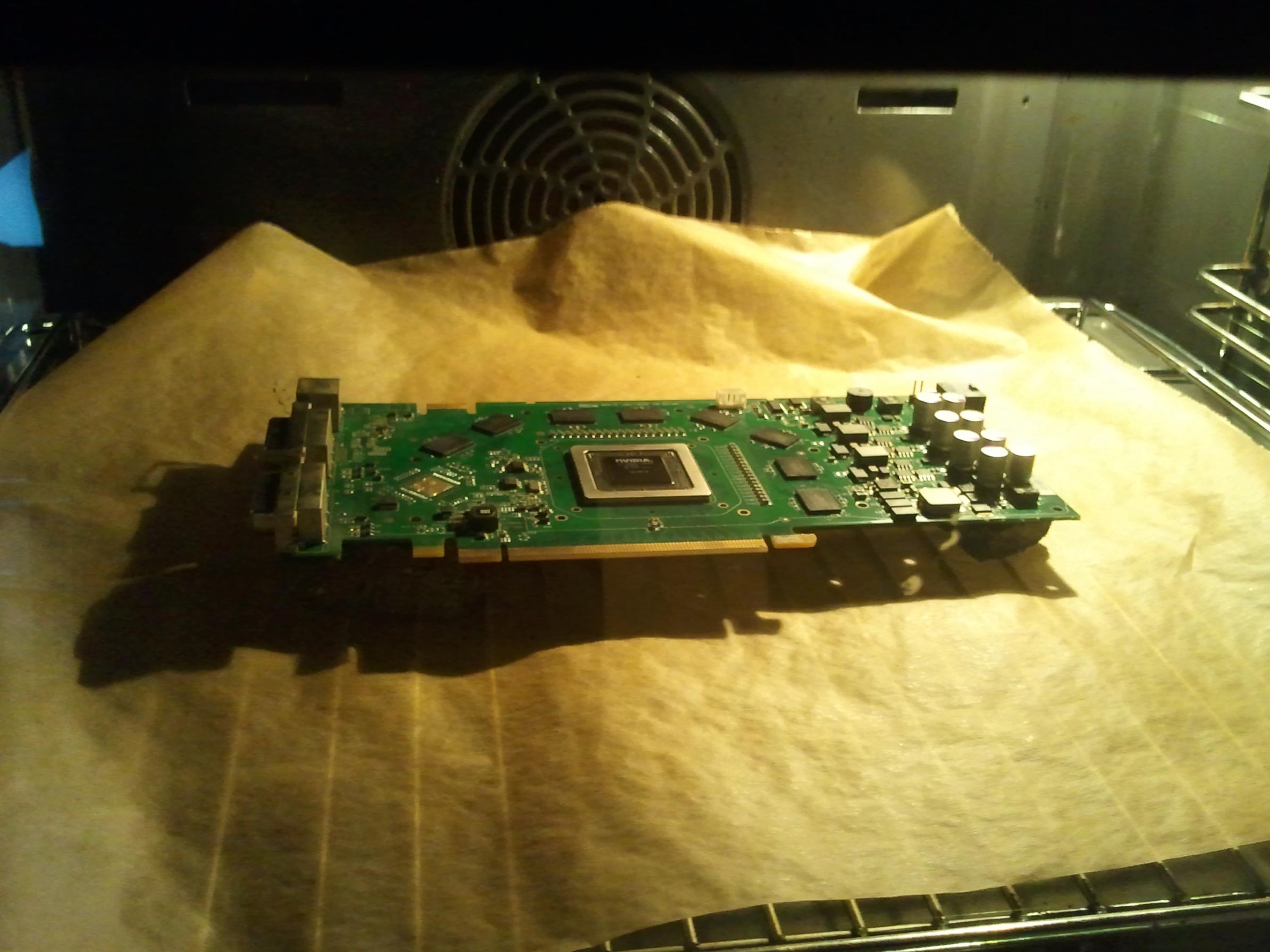 200°C vorgeheizt und die GraKa für 10 Minuten reingeschoben...