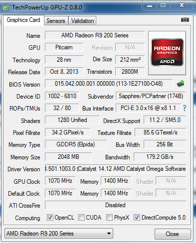 Grafikkarte: SAPPHIRE R9 270X 2GB GDDR5 OC