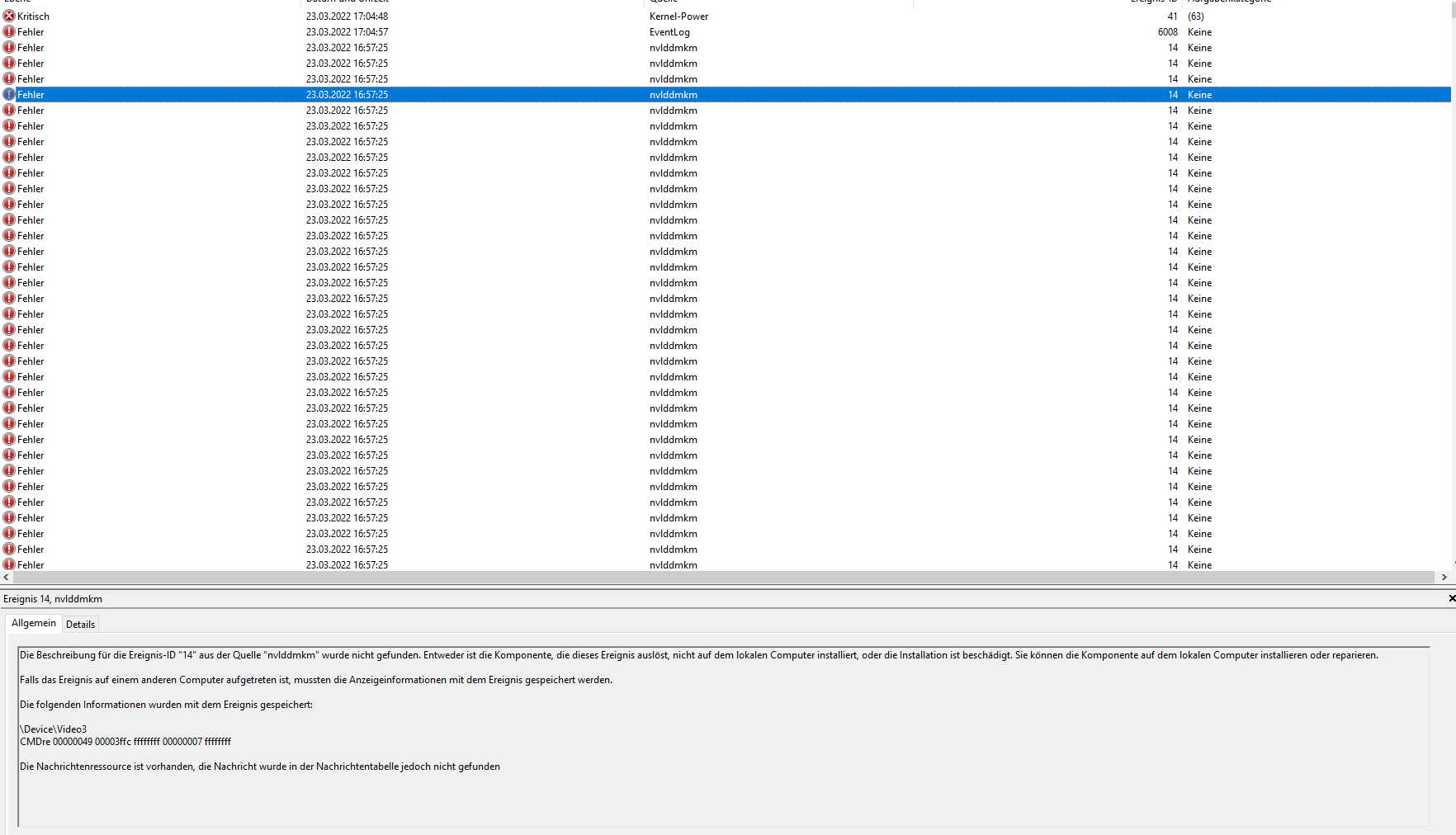Ich dann mal ein guten Bekannten gefragt der sich auskennt und er hatte dann bei ein Programm von Windows geguckt, was für Fehler angezeigt werden... siehe Anhang.