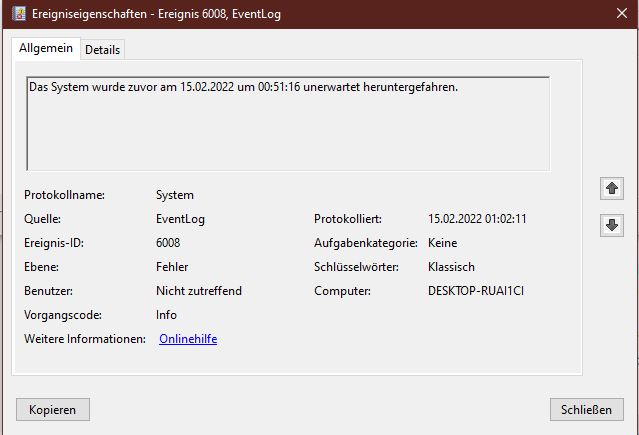 Zum Verlauf: Das game freezed für etwa 1-2 sek, dann gibt es den Bluescreen und danach den Neustart.