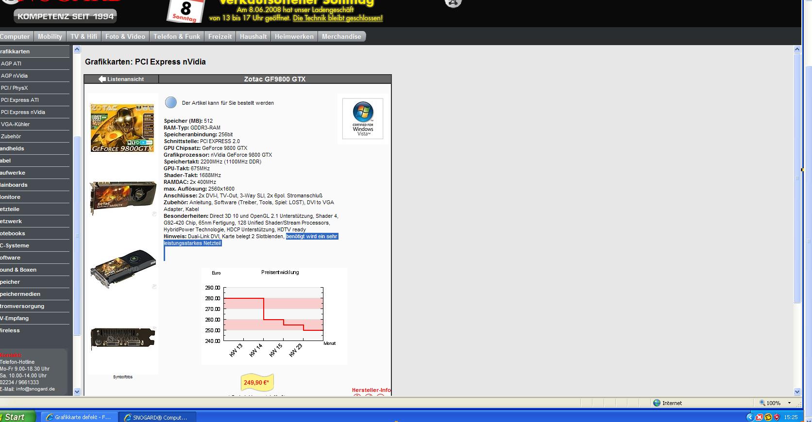 Wenn Ich die Grafikkarte (9800GTX) vom Strom nehme läuft der Rechner wieder normal an.
