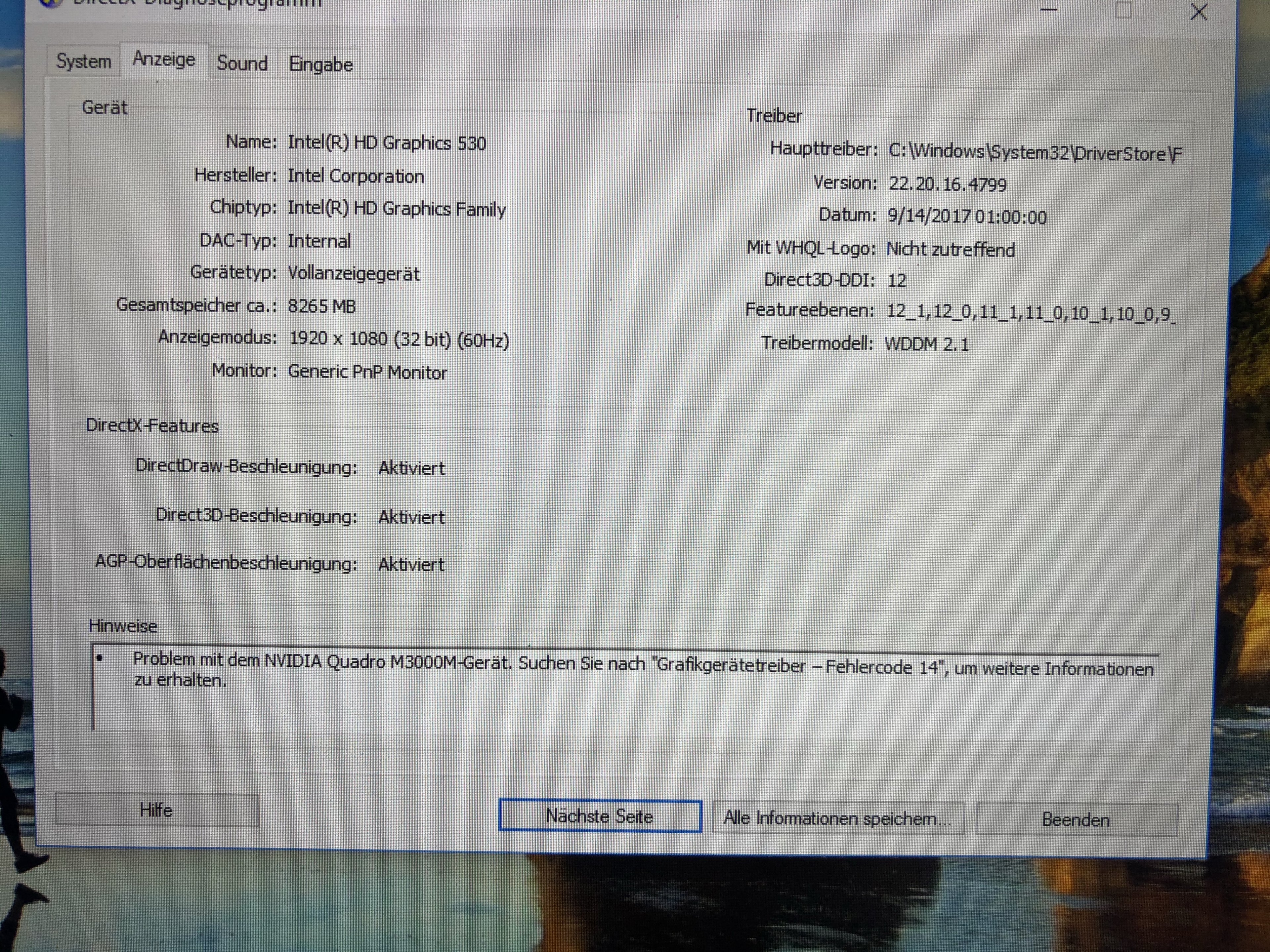Nö das verstehst du falsch. Du musst oben auf Anzeige 1 dann steht bei Name die Grafikkarte.