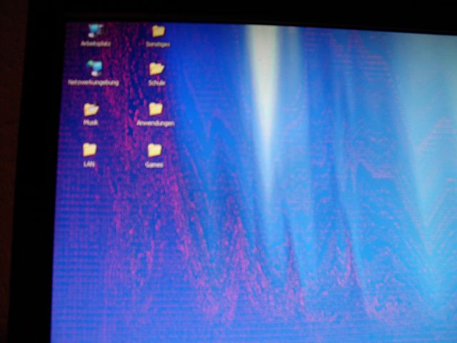 habe seit einiger Zeit habe ich gelegentlich rot-blinkende Pixel auf meinem Desktop und auch in einigen Spielen. Heute hatte ich wieder mal soetwas, zwar nich ganz so schlimm, aber dafür sind sie nicht einmal nach einem Neustart verschwunden.