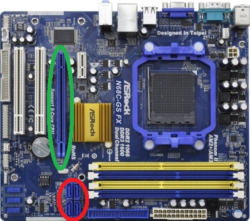 es passt nur eine max 20cm lange Graka rein, da die 4 kleineren Anschlüsse belegt sind: