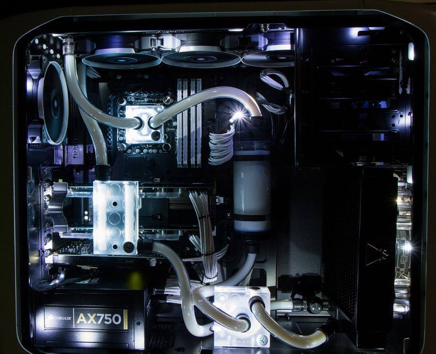 Der Lüfter ist dann zwar erst mal lauter (bis zu 3,1 Sone), dafür ist es kein Problem, eine passende Wasserkühlung zu finden.