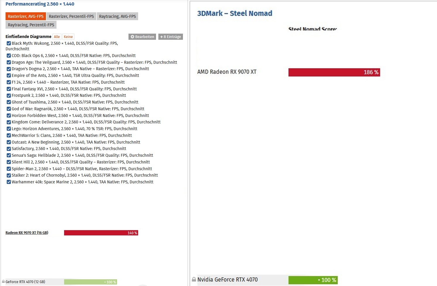 Man zahlt halt das was man bekommt RTX 5070ti beginnen bereits bei 1050 Euro, RX9070XT bei 800 ... muss jeder selber entscheiden ob diese Vorteile es wert sind: