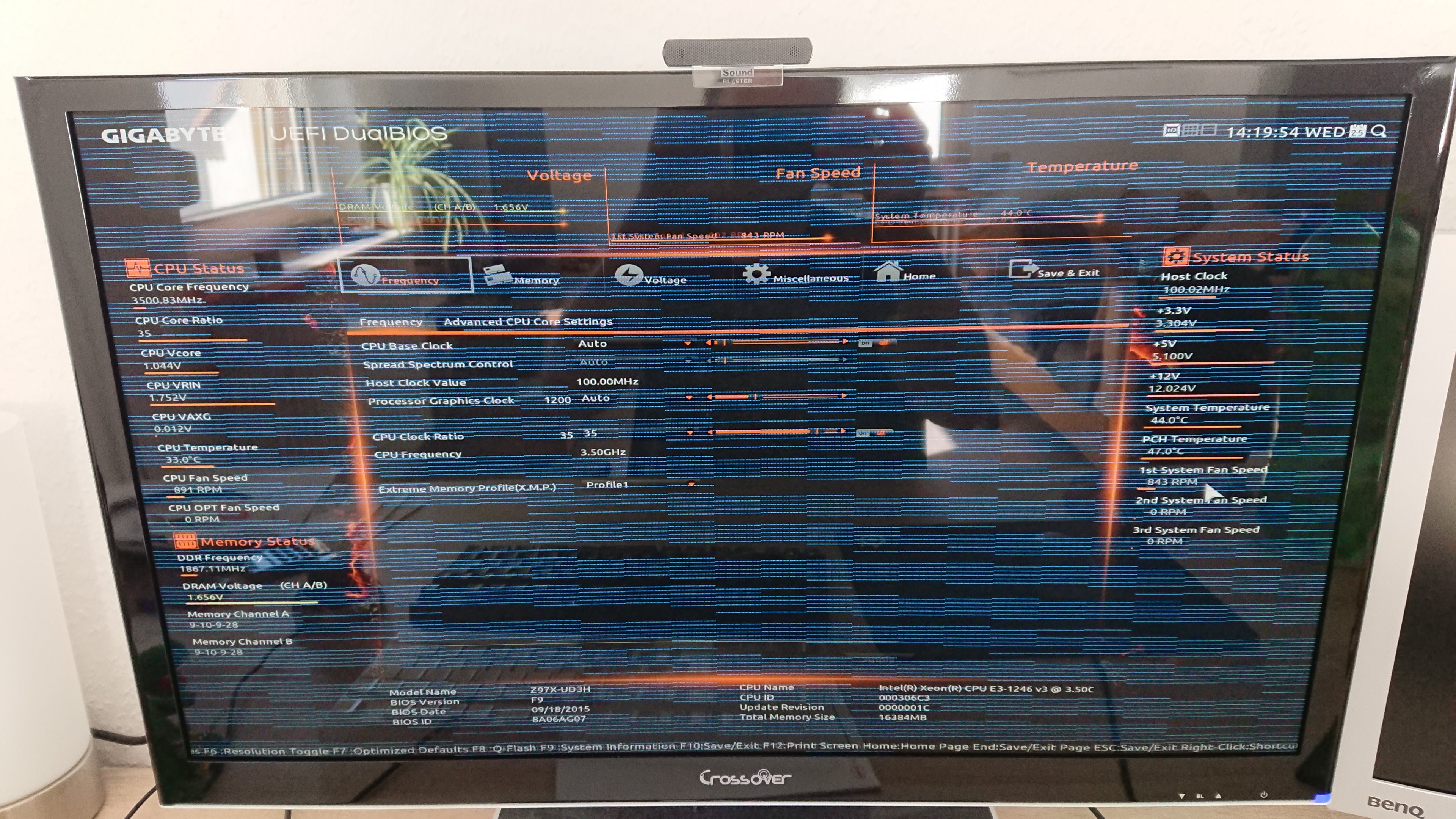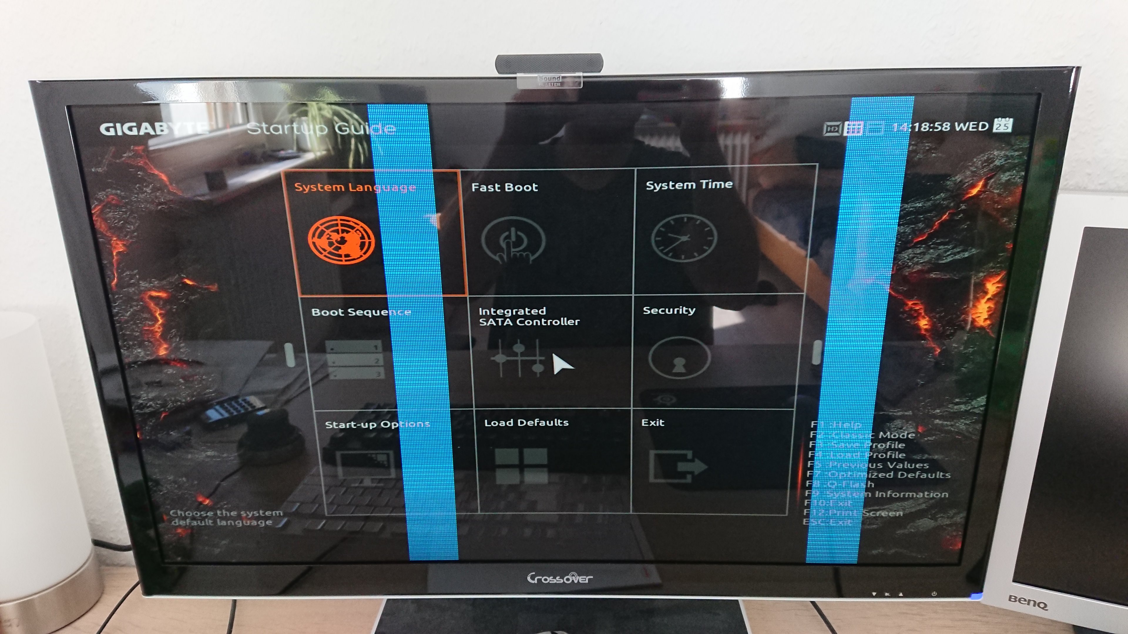 mit ist eben meine 7970 gestorben. :/ Beim Spielen von Cities Skylines hatte ich plötzlich eine hell-dunkel-grün gestreiftes Bild, nach einem Reboot begrüßte mich im BIOS und im Windows-Ladebildschirm folgendes Symptom:
