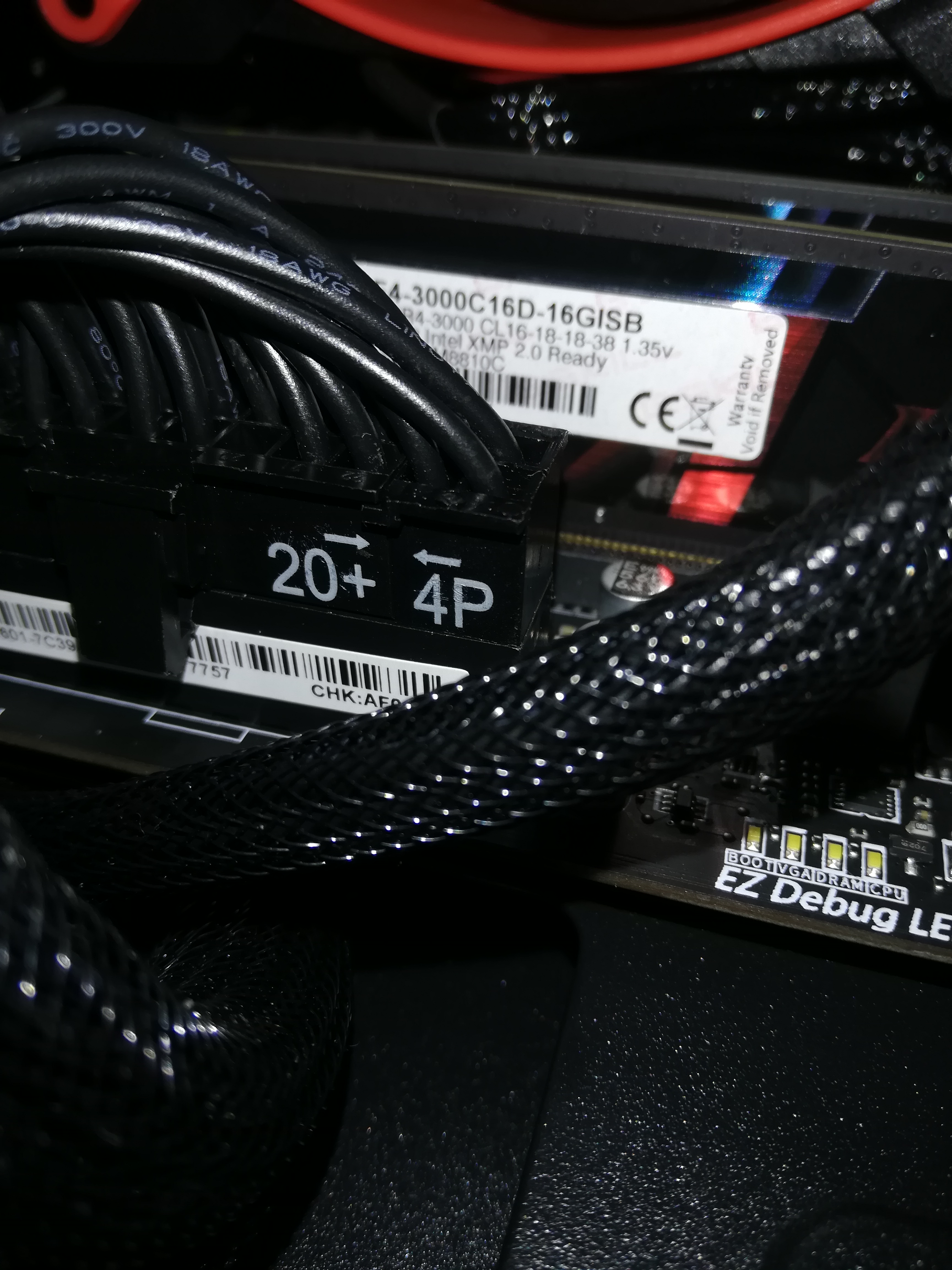 Also den Ram Riegel am Mainboard 20 Pin kabel mal rausnehmen und testen...